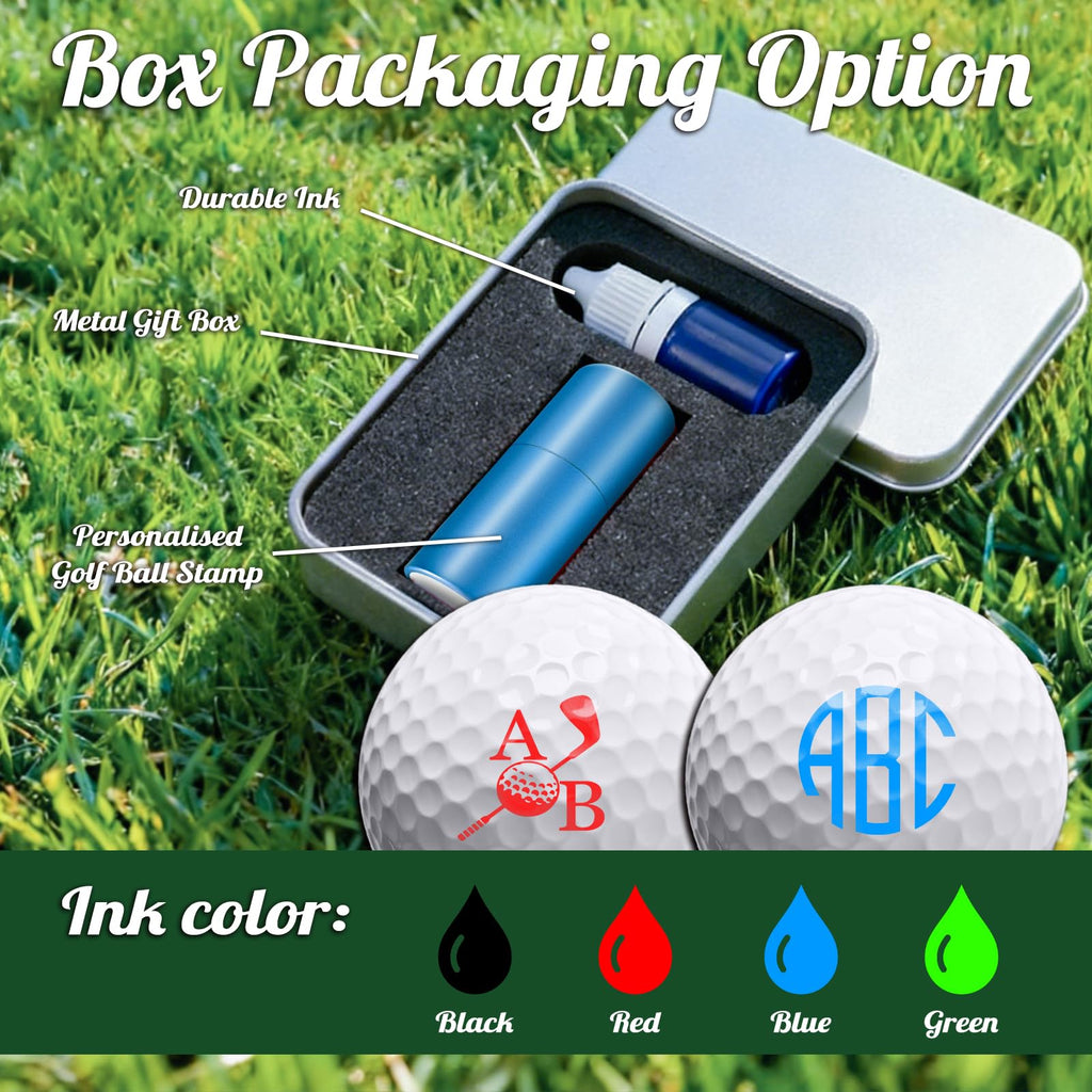 - Material & Color - Custom golf ball stamps are made of high quality aluminum that is durable and water and moisture resistant. You are offered 6 case colors:black, blue, red, gold, green and purple; 4 ink colors: black, blue, red and green.