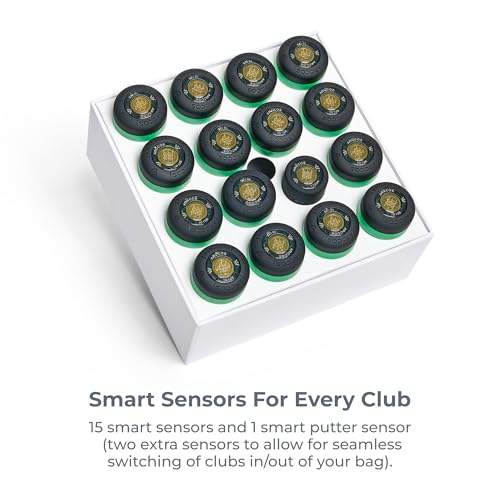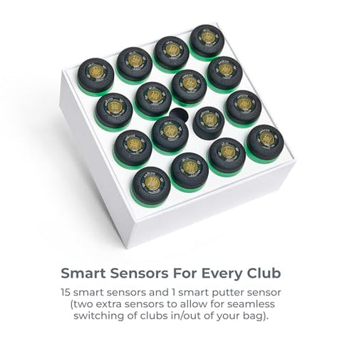 - 15 smart sensors & 1 smart putter sensor. Smart Sensors are weather-resistant, ultra-light, and feature a long lasting battery with a 2 year warranty.