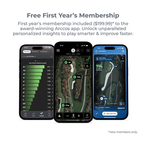 - FREE first year's membership ($199.99) to the award winning Arccos app from date of activation for new members only. Membership required after first year.