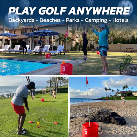- ✅ PORTABLE PLAY IT ANYWHERE : The entire 9 hole bucket golf set fits into the carry bag so it can be easily taken to play anywhere at parks, beaches, hotels, backyards, lawns etc. The best game to spice up your parties, vacations and birthdays.