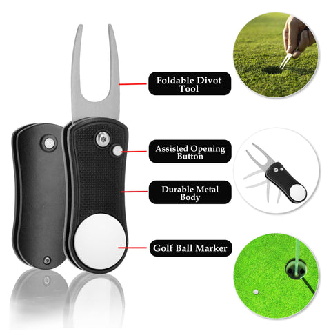 - DIVOT REPAIR TOOL & GOLF BALL MARKER - Foldable with assisted opening and magnetic golf ball marker