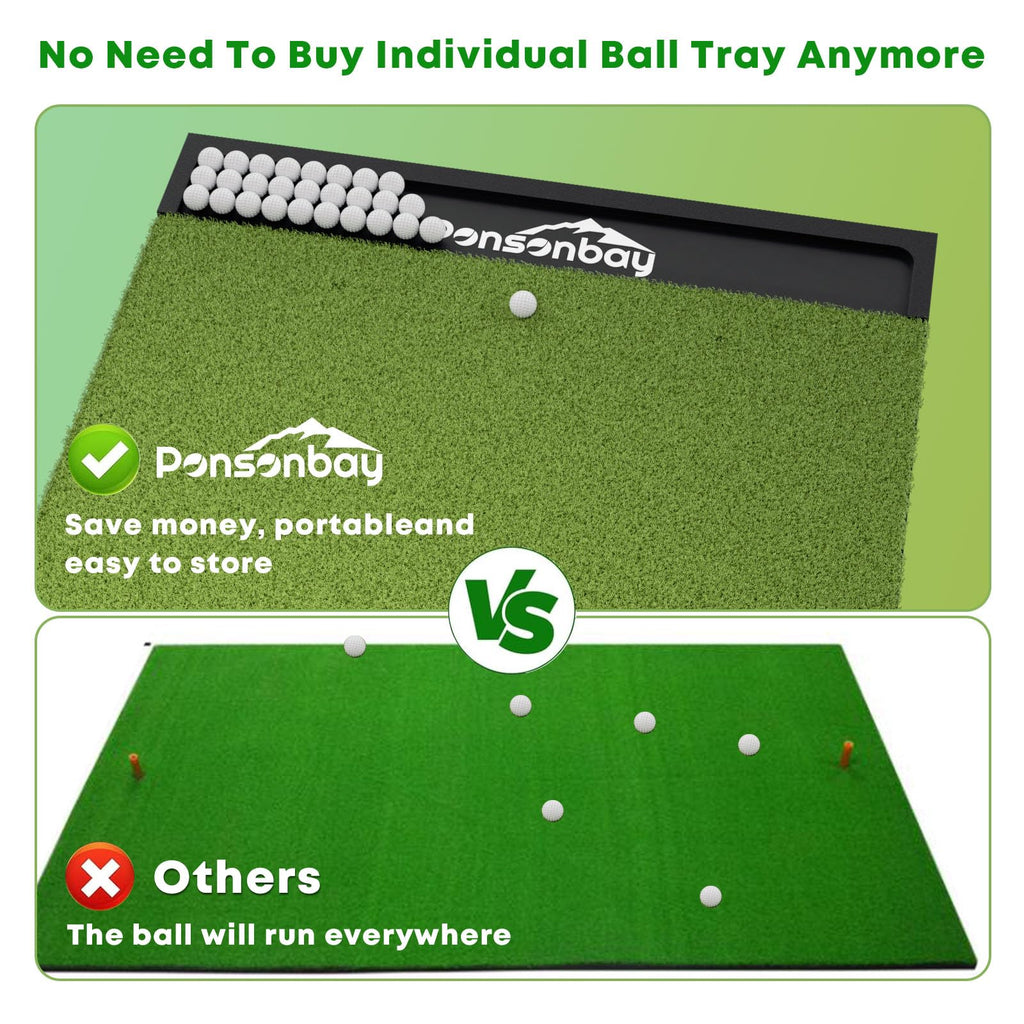 • Exclusive Patent: Ponsonbay 5 x 4 ft integrated golf hitting mat with ball tray is more affordable it eliminates the hassle of buying and carrying an additional ball tray. The one-piece design is easy to carry, roll up, and unfold, allowing for enjoyable golf practice
