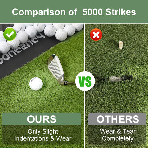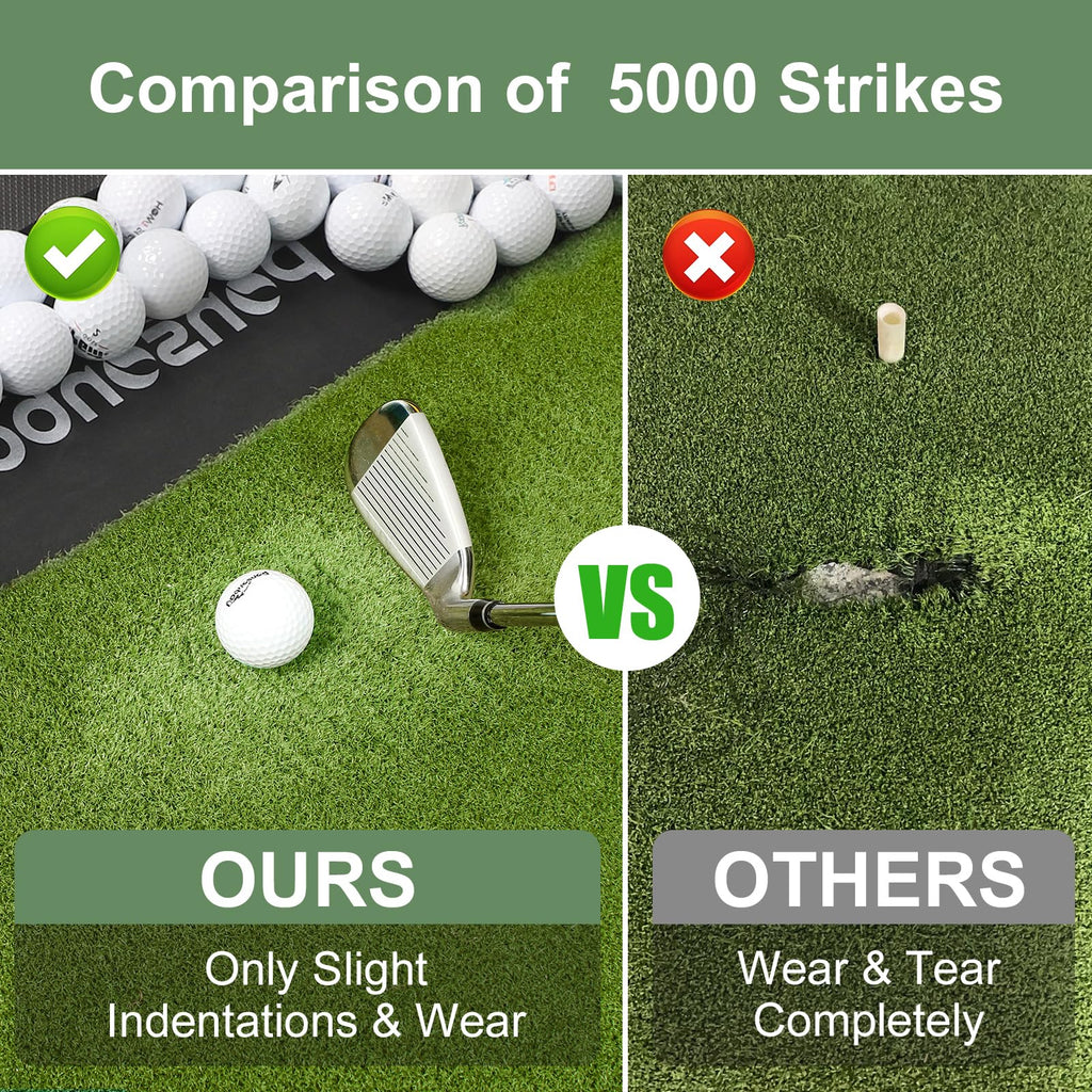 • Enhanced Turf: Upgraded to 0.63 inch for better impact resistance and reduced wear. This commercial-grade artificial turf mimics real grass and includes an anti-tear layer between the turf and foam base, helping this golf mat practice indoor withstand high-frequency use and extend its life