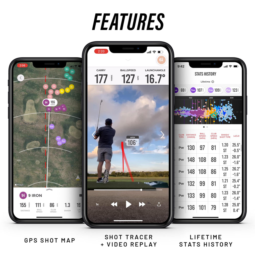 - Portable & Easy-to-Use Golf Tracker – This golf tracker and swing analyzer pairs seamlessly with your iPhone or iPad, offering instant shot feedback, swing data, and GPS shot scatter mapping for better training sessions.